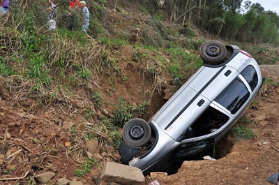 De acordo com informações, o condutor convergiu numa bifurcação que liga a rodovia José Rossi Adami á Avenida Albino Phelippe Potrich e acabou caindo no barranco por que o volante teria travado.