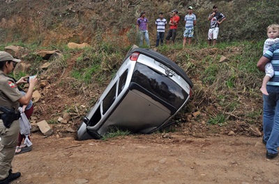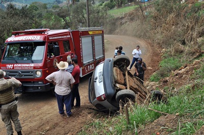 Um veículo caiu num barranco e capotou na manhã desta segunda-feira, 28 de agosto, na rodovia municipal José Rossi Adami, no Bairro Industrial em Caçador. o GM Corsa era conduzido por Ivan Ribeiro de 23 anos. Estavam com ele no carro, a esposa de 18 anos e um filho do casal de apenas um ano.