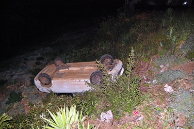 Um veículo GM Classic caiu num barranco e capotou na noite deste sábado, 2 de setembro, na Rua Paulino Leão, próximo a Panificadora Santelmo, na Vila Paraíso em Caçador. O condutor, visivelmente embriagado, não se feriu e foi conduzido a delegacia de polícia da comarca.