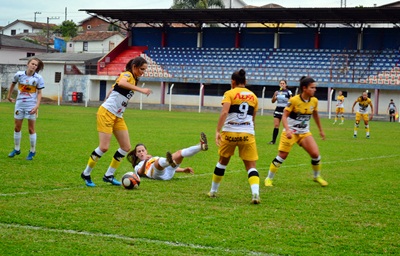 O primeiro tempo começou tenso com o time caçadorense movimentando a bola de forma rápida com foco no gol. Aos 35 minutos do primeiro tempo, a camisa 9, Carla Beatriz marcou o primeiro gol da partida.
