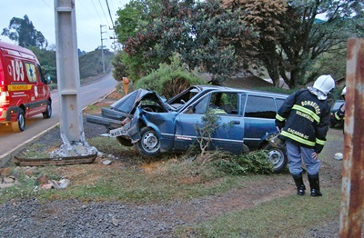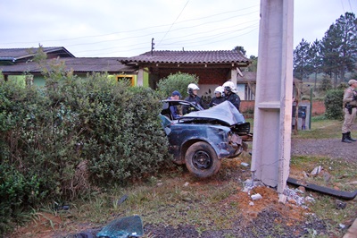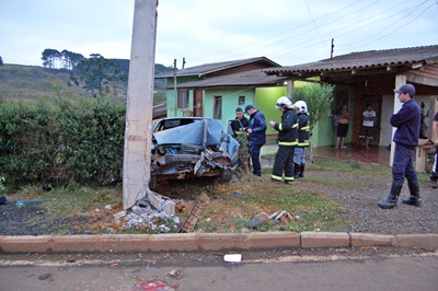 De acordo com informações, a GM Marajó, com placas de Caçador seguia em direção ao Loteamento Mutirão quando o motorista perdeu o controle ao contornar uma curva, bateu no poste e parou no pátio de uma residência.