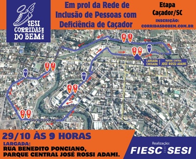 A Vice-Presidência Regional da FIESC, através do SESI, realiza dia 29 de outubro em Caçador mais uma edição da Corrida do Bem, o maior circuito de corridas de Santa Catarina. Parte do dinheiro arrecadado será destinado para a Rede de Inclusão de Pessoas com Deficiência.