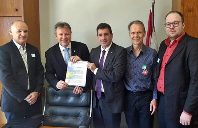 O deputado Valdir Cobalchini (PMDB) acompanhou o presidente do Conselho Consultivo do Hospital Maicé, de Caçador, Leonir Tesser, e o superintendente, Sergio Schmitz Junior, em audiências em Brasília com deputados federais e autoridades da Saúde na busca de liberação recursos para a instituição.