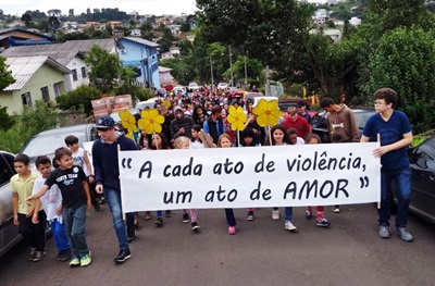 Com faixas e cartazes, todos os alunos da escola se envolveram na atividade. A caminhada percorreu as principais ruas do bairro Gioppo, com o objetivo de sensibilizar a sociedade com relação ao tema. “As crianças e jovens serão os adultos de amanhã. Ações como essa ajudam no desenvolvimento deles como cidadão de bem, que não aceitam qualquer tipo de violência”, avaliou o diretor Giovani Camargo.