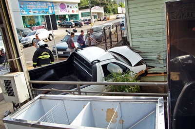 Em 2012, um acidente semelhante aconteceu no mesmo local, naquela oportunidade o veículo foi parar dentro da empresa Olitec que fica ao lado desta residência. Clique aqui para relembrar.