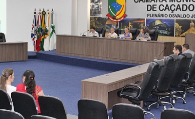 A Audiência Pública foi comandada pela Presidente da Comissão de Finanças, Orçamento e Contas do Município, Vereadora Sirley Ceccatto, ao lado do membro da Comissão, Neri Vezaro. A mesa dos trabalhos contou ainda com a presença da Vereadora Cleony Figur e da Secretária-adjunta da Fazenda, Claudete Leidens.