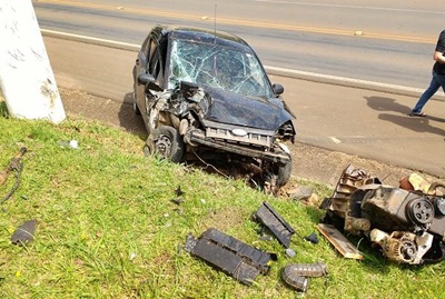 Com a violência do impacto, o motor chegou a se soltar da estrutura do carro.