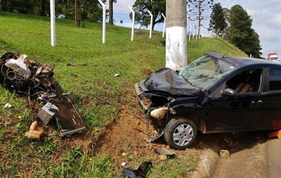 Uma forte colisão na rodovia SC-350, próximo a empresa Sul Brasil, na localidade do Castelhano em Caçador, deixou uma pessoa ferida. O acidente ocorreu por volta das 10hrs, desta quarta-feira, 6 de dezembro e envolveu um Ford Fiesta que bateu violentamente contra um poste de energia elétrica.