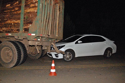 De acordo com informações, um caminhão com placas de Palmas/PR, carregado de toras seguia em direção a Caçador, quando um problema mecânico obrigou o motorista parar sobre a via. No entanto, um Toyota Corolla de Guaranicú/PR que trafegava logo atrás, parou muito próximo e como o motorista do caminhão não segurá-lo, devido ao peso da carga, o mesmo acabou voltando para trás e batendo no Corolla.