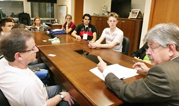 No Plenarinho, comemorando o sucesso da articulação política que levou o colega André de Lemos Estrowispy à vice-presidência da mesa diretora, os deputados mirins Kevin Oliveira, Larissa Ponzoni, Ramon Gomes, Rafaela Piati, Régis Porazzi e Talita Oliveira demonstraram, em entrevista, muito entusiasmo com a atividade. Os caçadorenses apresentaram projetos voltados à erradicação do bullying, de incentivo à reciclagem e para a contratação de psicólogos para as escolas. A elaboração dos projetos foi orientada pela Câmara de Vereadores de Caçador. Os estudantes salientaram também a importância do encontro com o deputado Reno, que trabalha por Caçador e por todo o Estado de Santa Catarina há quase duas décadas. “A presença dos estudantes catarinenses no Parlamento, com novas idéias e entusiasmo é alentadora, porque o crescimento do Parlamento e o fortalecimento da democracia passa obrigatoriamente pela participação do cidadão” defende o deputado.