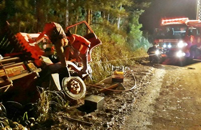 Um homem ficou ferido num acidente de trânsito ocorrido na madrugada desta quarta-feira, 24 de janeiro. Ele estava num caminhão que saiu de pista e tombou no KM-36 da SC-350 entre Caçador e a BR-153.