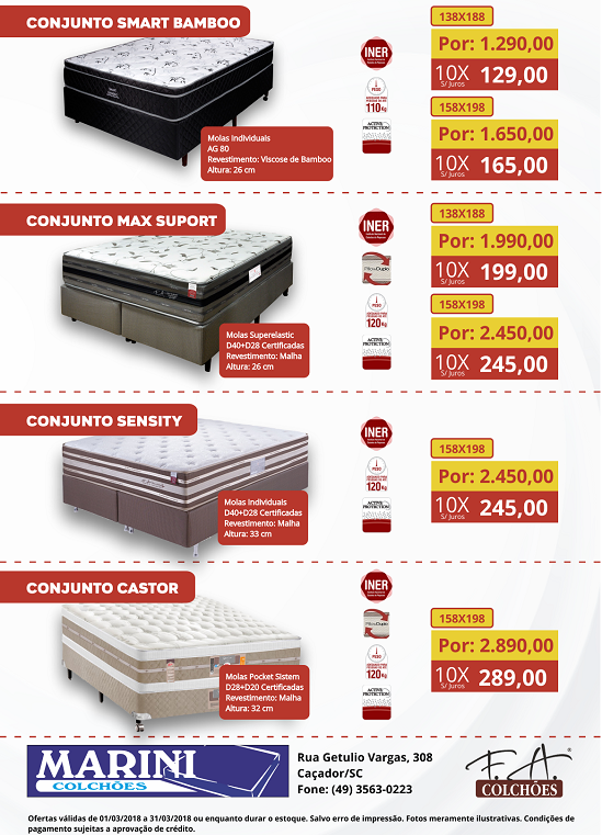 Essas e outras ofertas você só encontra na Marini Colchões! Mas corra, porque as ofertas são válidas até o dia 31 de março ou enquanto durar o estoque.
