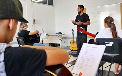 As oficinas de canto e violão da Fundação Municipal de Cultura e Turismo estão com vagas disponíveis. As aulas, que são gratuitas, iniciaram dia 19 de fevereiro e já contam com mais de 40 turmas. A idade mínima para participar, é de 7 anos.