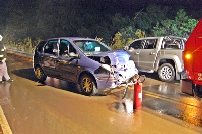 De acordo com informações, chovia forte no momento do acidente e devido a falta de visibilidade o motorista do Scenic teria saído de sua pista e invadido o outro lado, causando a batida.