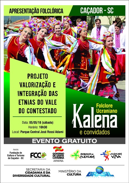 O grupo de Folclore Ucraniano Kalena, de Porto União, será a atração principal do evento que contará, também, com atrações de Rio da Antas e das apresentações das oficinas da Fundação de Cultura e Turismo de Caçador.