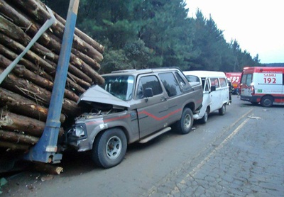 Oito pessoas ficaram feridas num acidente de trânsito no início da manhã desta quinta-feira, 10 de maio, na rodovia SC-350, próximo ao Distrito de Taquara Verde, em Caçador. A colisão envolveu um caminhão de transporte de toras de pinus, uma caminhonete D-20 e uma Kombi.