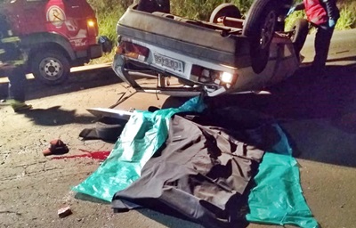 De acordo com informações, um VW Gol com placas de Salto Veloso se deslocava em direção ao seu município de origem quando o condutor perdeu o controle da direção, colidiu num barranco e capotou. Com a violência da batida, o motorista, identificado como Willian Untenberger, de 21 anos foi arremessado para fora do carro e morreu na hora.