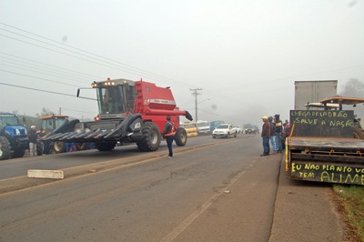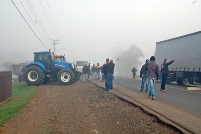 Por volta das 8hrs, dezenas de caminhoneiros e agricultores formaram um bloqueio na rodovia Honorino Moro, no trecho que antecede a SC-350, em direção a BR-153. Caminhões, veículos e máquinas agrícolas foram enfileiradas ás margens da estrada e o tráfego bloqueado para veículos de carga não perecível.