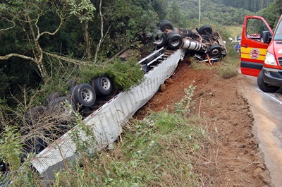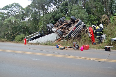 Uma carreta com placas de Toledo/PR tombou na SC-135 entre os municípios de Rio das Antas e Caçador, na tarde desta quinta-feira, 31 de maio. Duas pessoas ficaram feridas, sendo que uma delas ficou presa ás ferragens.