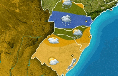Nuvens carregadas associadas ao deslocamento e intensificação de sistemas de baixa pressão entre a superfície e a média atmosfera causam chuva moderada a forte