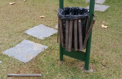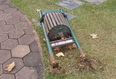 O Parque Central José Rossi Adami, de Caçador, foi alvo de vândalos na madrugada da quinta-feira, 31 de maio. Diversas lixeiras foram amassadas e arrancadas do chão.