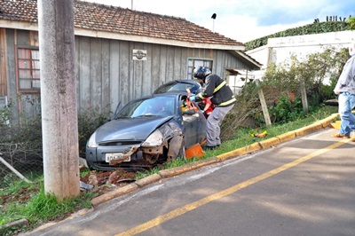Devido ao impacto, o motorista perdeu o controle da direção e o veículo acabou rodando na via e colidindo num poste. Uma residência quase foi atingida.