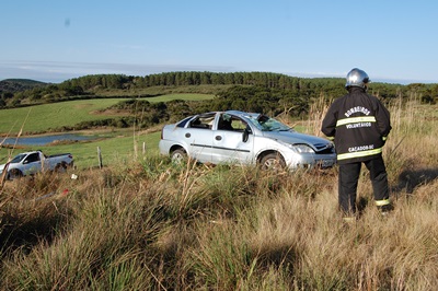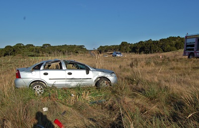 De acordo com informações, o VW Corsa Sedan placas APG-8835 de Xanxerê seguia em direção a Caçador quando ao contornar uma curva, rodou na pista e capotou.