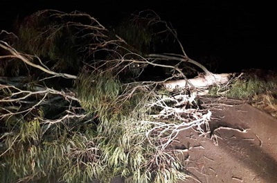 Assim que foi acionada, a Central de Operações de Fraiburgo encaminhou viaturas para o local, mas num determinado ponto da rodovia, as mesmas se deparam com uma árvore caída sobre a pista, provavelmente derrubada pelos próprios caixeiros para impedir a passagem das viaturas.