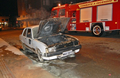 Um Chevette com placas de Caçador pegou fogo na noite desta quarta-feira, 16 de agosto, na Rua Alcides Tombini, próximo ao Mercado Santa Catarina, No Santelmo. O veículo ficou com a parte do motor completamente destruído devido ao sinistro.