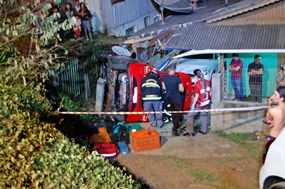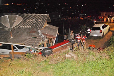 Um veículo despencou de um barranco e atingiu uma residência no início da noite deste domingo, 19 de agosto. O acidente aconteceu na Rua Aldo Elói Gattermann, no Bairro Alto Bonito, em Caçador.