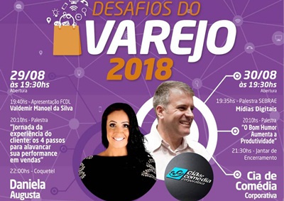 A Câmara de Dirigentes Lojistas (CDL) de Caçador realiza nos dias 29 e 30 de agosto, na Câmara Municipal, mais uma edição do Seminário Desafios do Varejo que tem como objetivo promover o conhecimento contínuo dos empresários lojistas e seus colaboradores, incentivando o aprimoramento constante, através de palestras que trazem um diferencial competitivo para os participantes do evento.