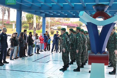 O evento reuniu autoridades municipais, civis, militares, comunidade escolar e população em geral. O fogo simbólico, carregado e aceso pelo praça mais distinto da turma de 2018, Atirador Artuzzo, será mantido na Prefeitura até que a chuva passe.